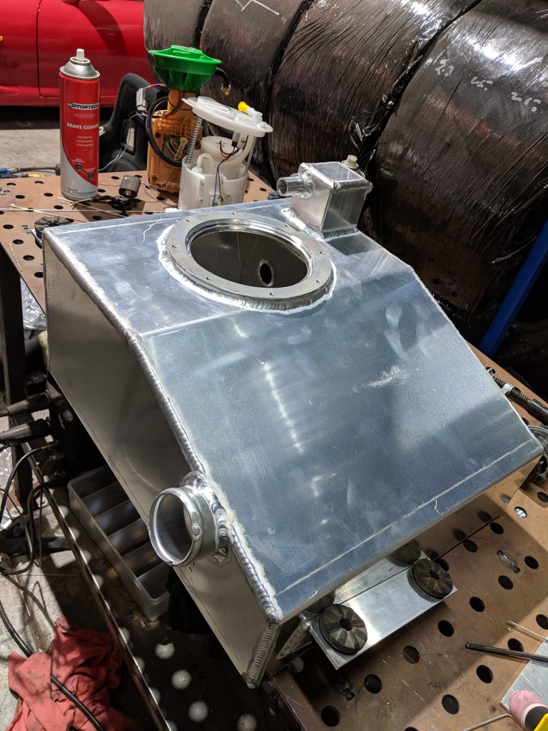 Fuel system for racecar which included a custom tank with integrated sender unit and pierburb lift pump. To a billet surge tank with internal 520 walbro fuel pump. If your after something more street orientated this Lj Torana drop tank has been fitted to a street car. it also includes a internal pump and level sender. Can be fitted with carburetor or efi pump. We can custom make a system for every application.